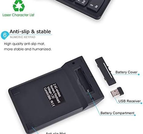 • ✅ Plug and play number keypad: Wireless numeric keyboard, USB interface, easy to install and use. Plug & Play, no driver installation required