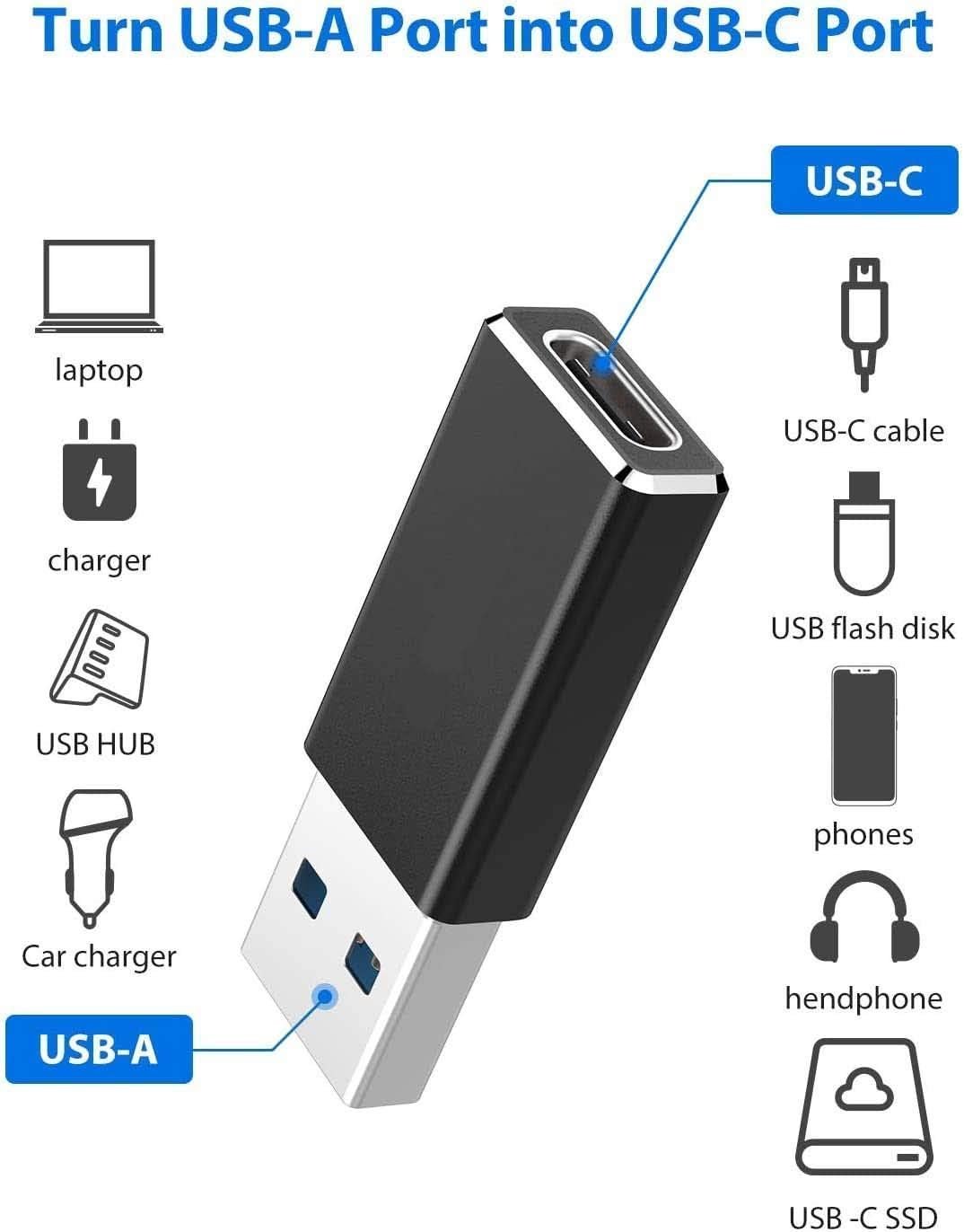 3 Pack USB Type C USB 3.1 Type C Female to USB Male Adapter Connector Converter Works with Laptops,Chargers Compatible for Airpods, iPad, Samsung Galaxy, Google Pixel