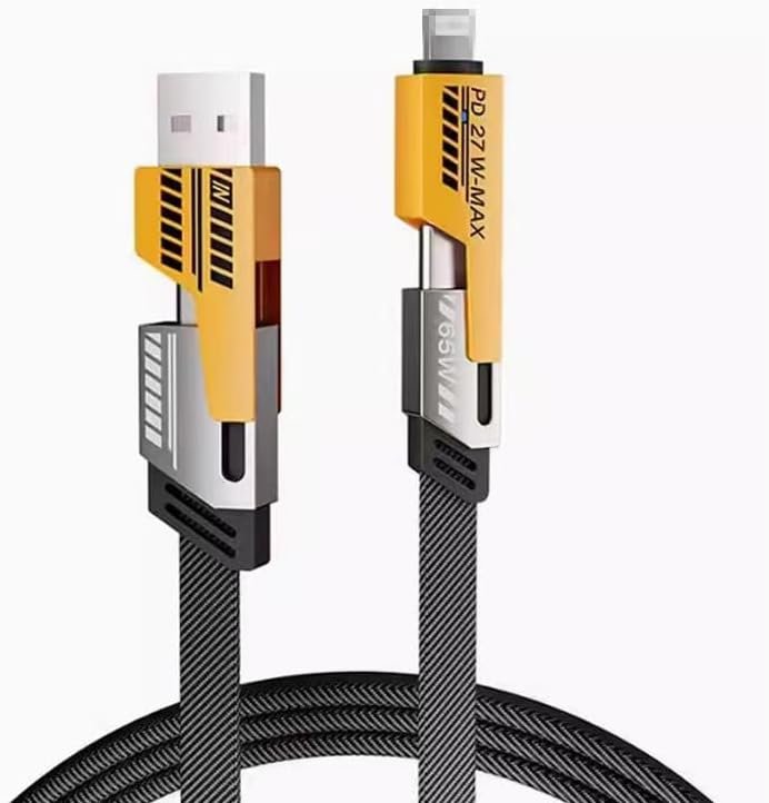 4 in 1 PD 27W 65W Fast Charging Cable(3.3ft),Zinc Alloy Charge Cable for iPhone 15 Pro Max/15/14/13/12, Samsung Galaxy S23.