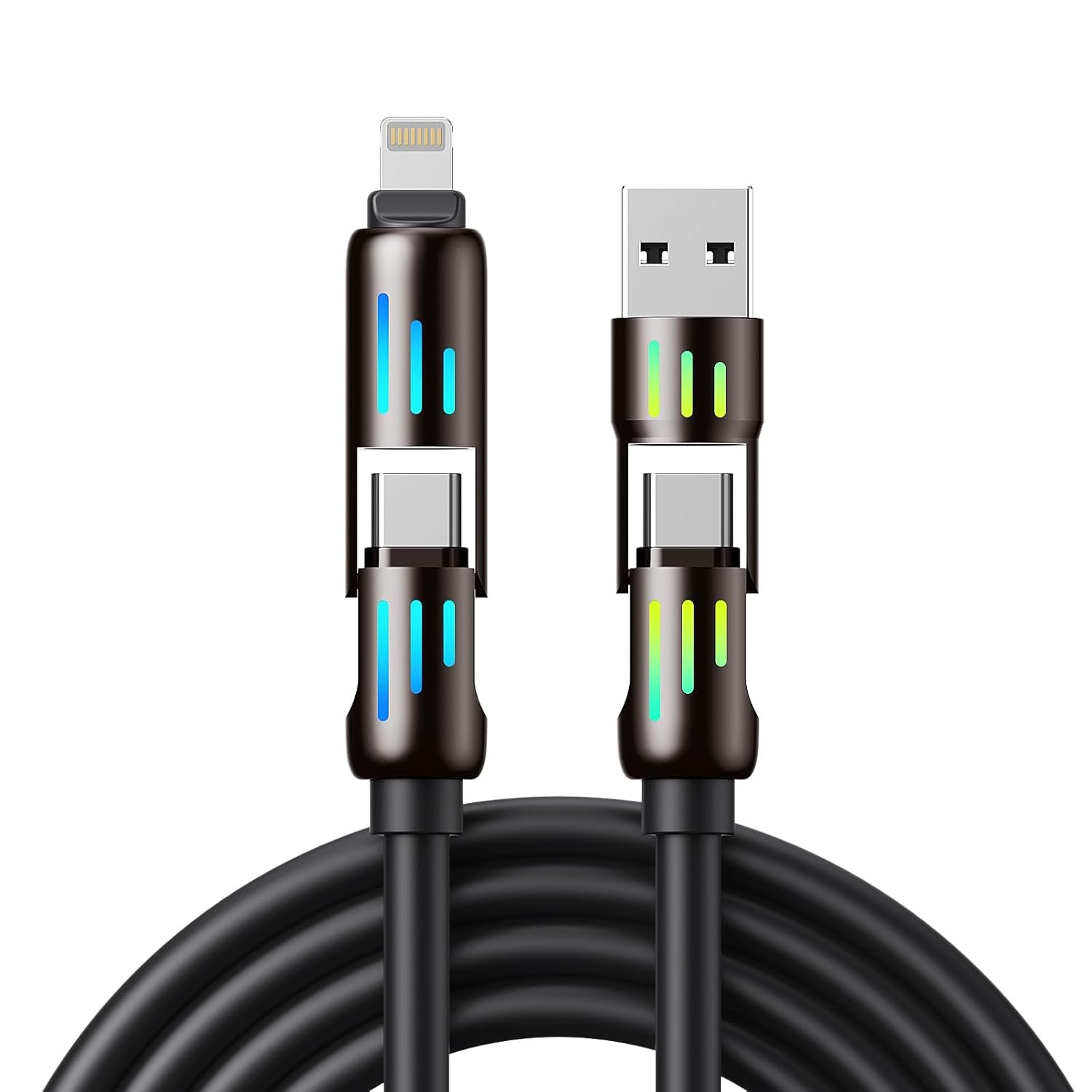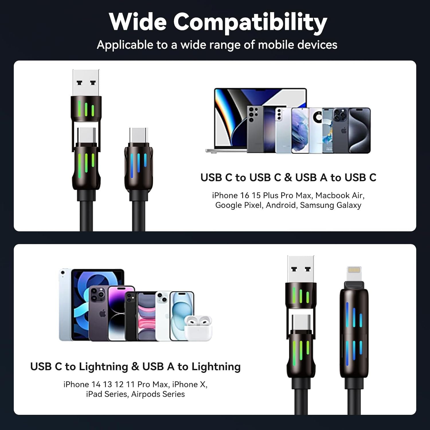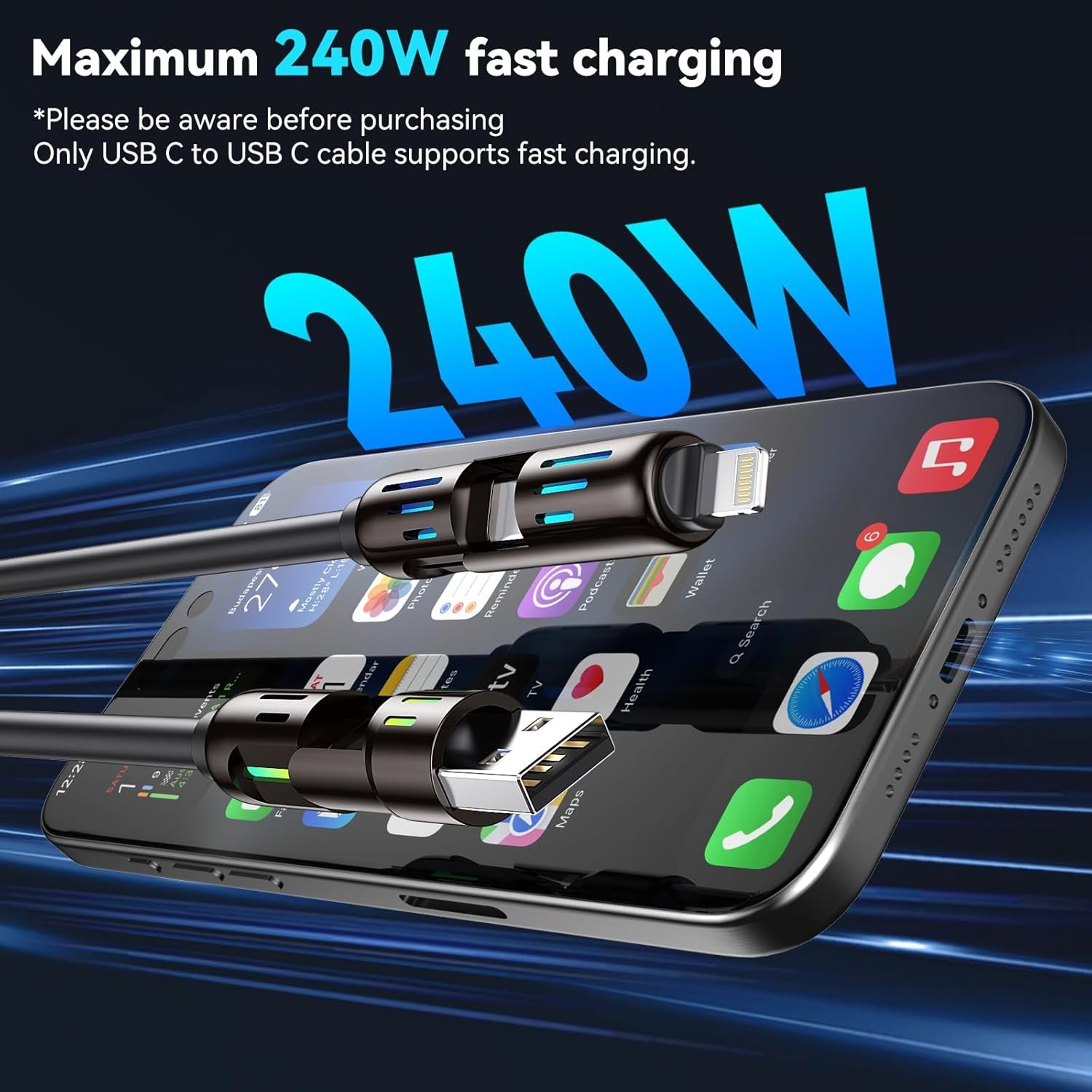 aceyoon 4-in-1 Multi USB Charging Cable, MAX 240W Straight Head Fast Charging/Charger Cord with USB A+Type C for iPhone 16/15 14 13 iPad Samsung Galaxy MacBook iPad Tablets
